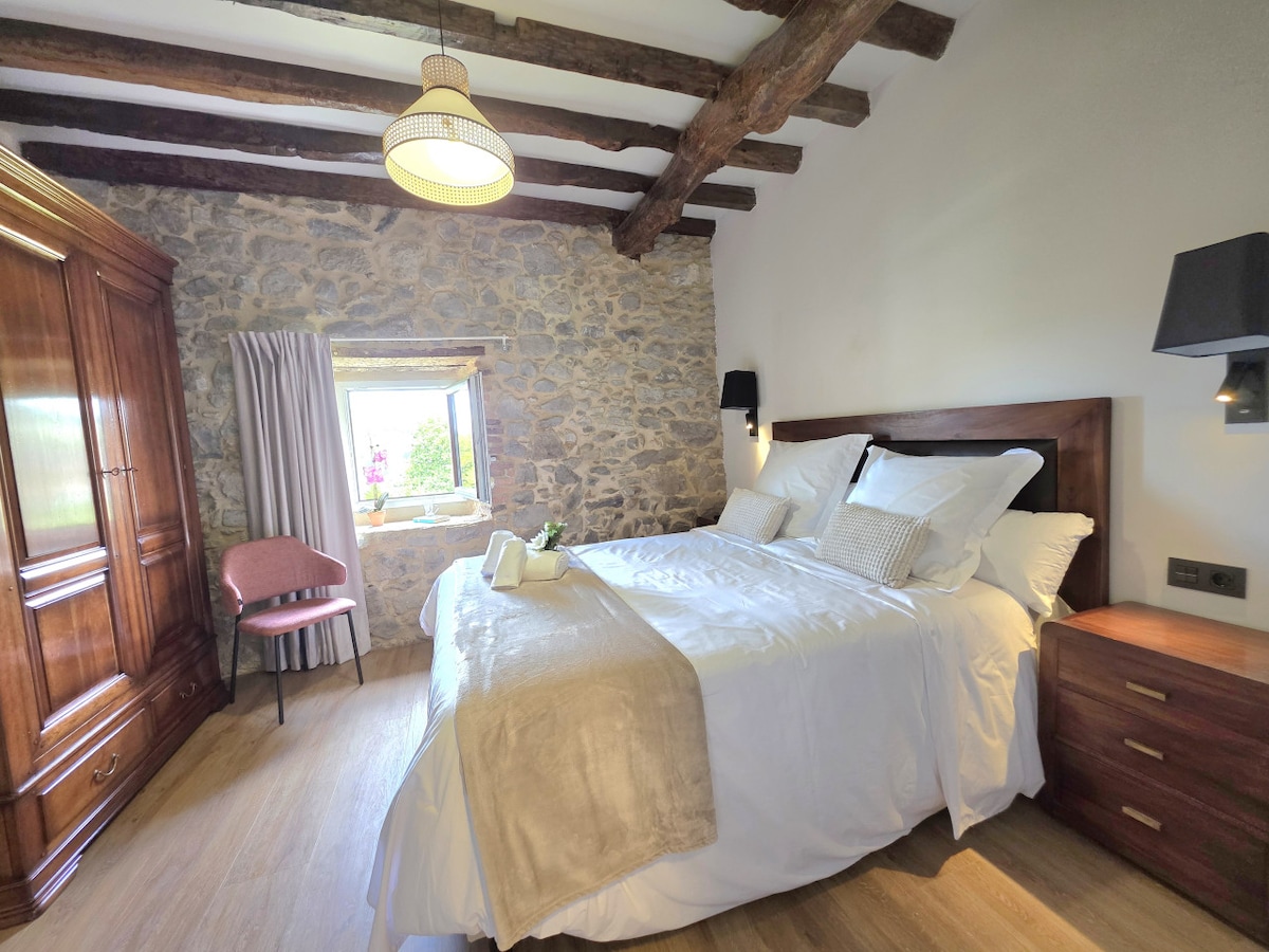 Casa de 3 dormitoris. Habitació 1: dos llits de 55 polzades i dues lliteres de 39 polzades Habitació 2: un llit d'1,40 m (4,63 peus) Habitació 3: 1 llit de 55 polzades (1,40 metres) Piscina petita, jardí amb vistes i barbacoa d'ús exclusiu. No són d'ús compartit. Terrassa amb vista a la vall. Aquest allotjament respira tranquil·litat: relaxa't amb tota la família gaudint de les seves vistes de la vall. Té una llar de foc de llenya i fusta disponible.