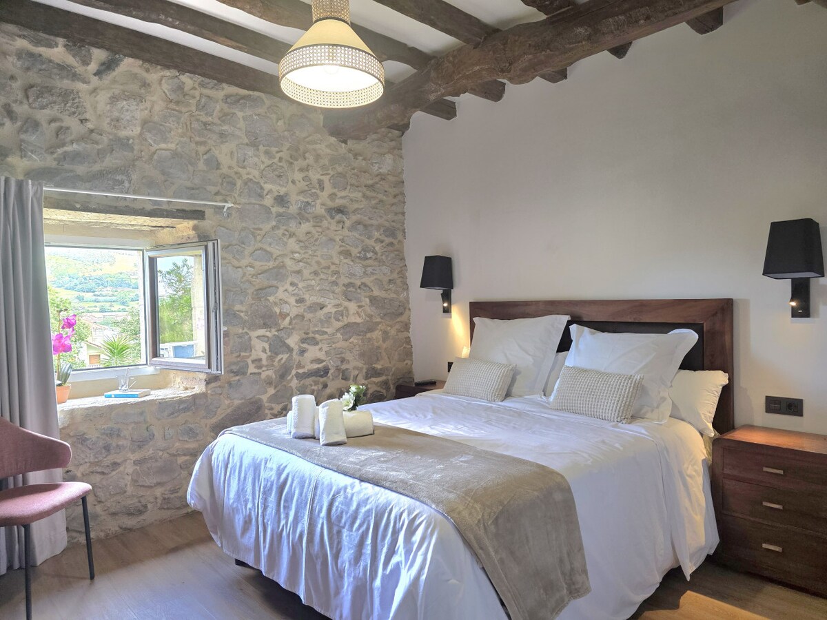 Casa rural feta de pedra i teulada de pissarra, original de la zona amb una ubicació i vistes inigualables, té un bosc privat de roure i castanyer amb la seva pròpia taula de pícnic i una extensa granja per passejar en un entorn incomparable, 2 plantes, 3 habitacions, una d'elles amb sofà i televisió, barbacoa - llar de foc exterior, pou d'aigua, porxo cobert, terrassa - balcó, mirador - terrassa - mirador - terrassa suspesa al costat del turó amb impressionants vistes de la vall i les muntanyes, així com de tota la casa.