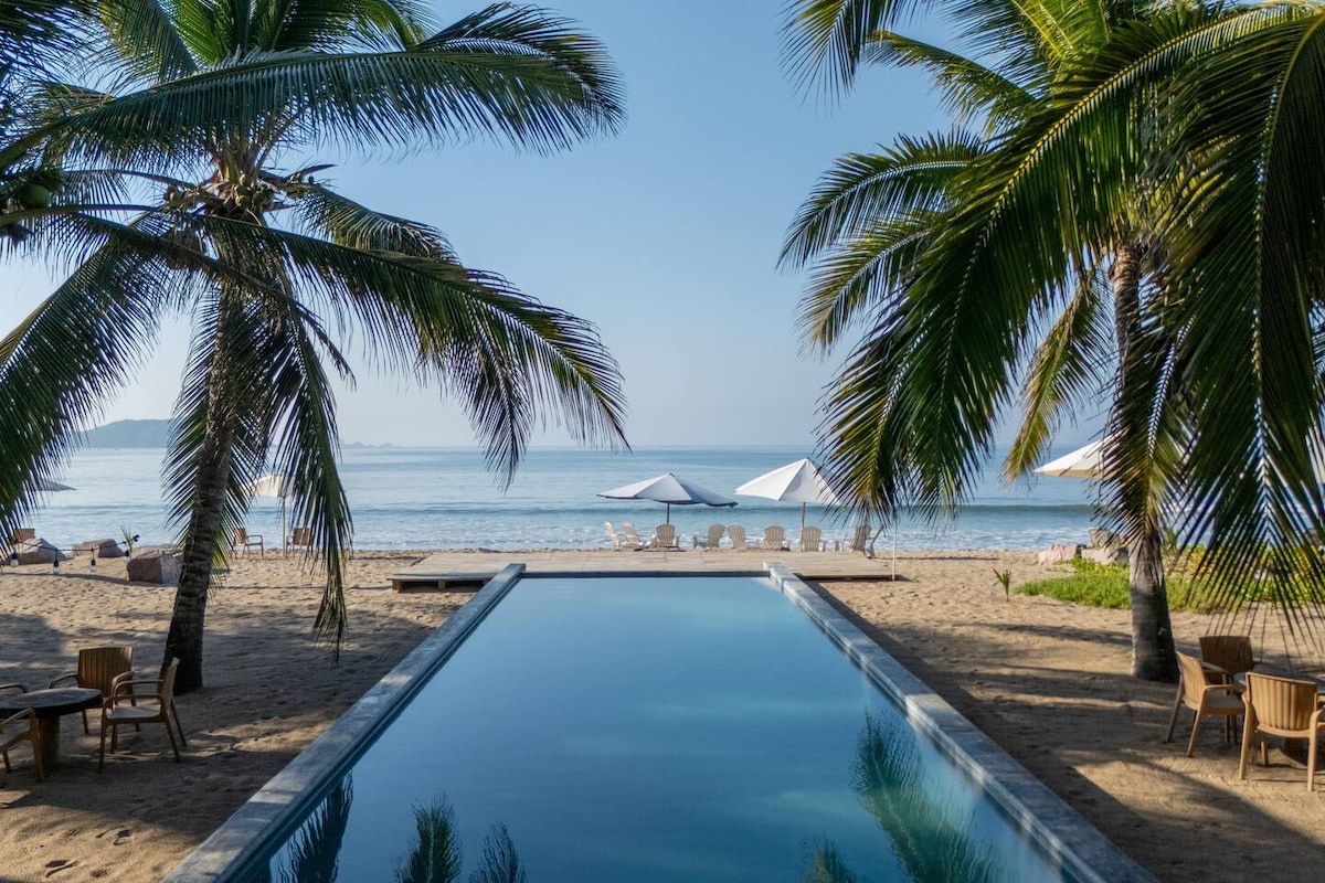 Gaudeix del nostre bungalou a la platja de Coral, directament a la sorra. Dissenyat amb materials naturals, ofereix 1 dormitori amb llit «king size», 1 sofà llit «king size» i 2 banys. La cuina i la sala d'estar s'obren a una terrassa i a un porxo de fusta amb una piscina privada climatitzada amb vistes al mar. La vil·la és completament nova, ja que es va acabar de construir el desembre del 2024. Els hostes també tenen accés a una piscina infinita compartida amb hamaques i para-sols entre les palmeres. Un lloc fàcil i tranquil per gaudir de la costa mexicana.