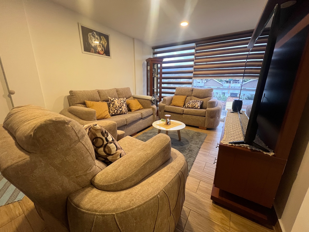 Pis situat a Valle de los Chillos, sector La Armenia 1. Té una ubicació excel·lent, a només 8 minuts de l'Escola Politècnica de l'Exèrcit (ESPE), a 6 minuts del centre comercial San Luis i a 8 minuts de l'estadi Banco Guayaquil Chillo Jijón, tot en cotxe. A prop trobaràs una gran varietat de bars i restaurants. Estaré encantat de recomanar-te els meus llocs preferits de Valle de los Chillos perquè puguis gaudir al màxim de la teva estada. Estarem encantats de donar-te la benvinguda!