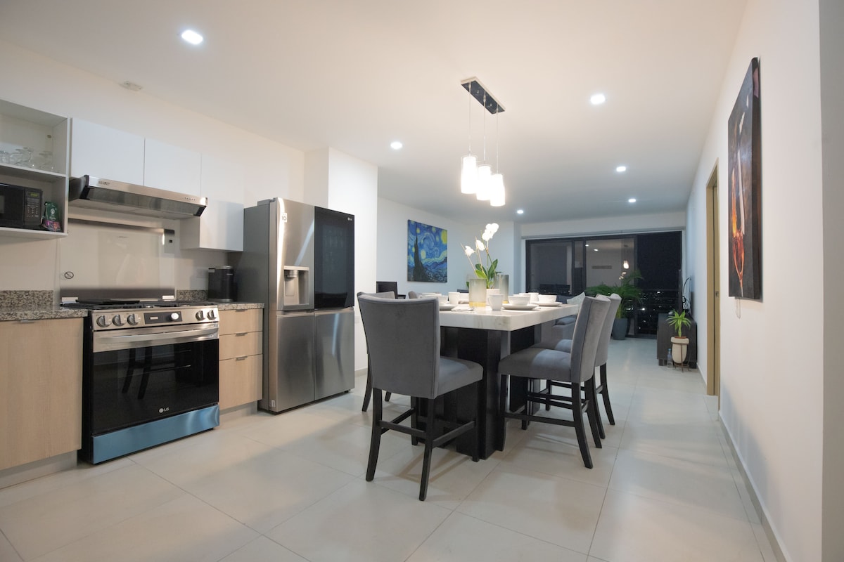 Come enjoy your stay in this stylish and exclusive apartment in Colonia Escalón! Located in a very central area, you’ll be just minutes away from popular malls like Gran Vía, Multiplaza, and Galerías. The apartment has everything you need—perfect for family vacations, business trips, or a weekend getaway. And a beautiful city skyline view. Plus, you’ll find great restaurants, bars, and nightclubs nearby, making it easy to enjoy El Salvador’s nightlife without going far.