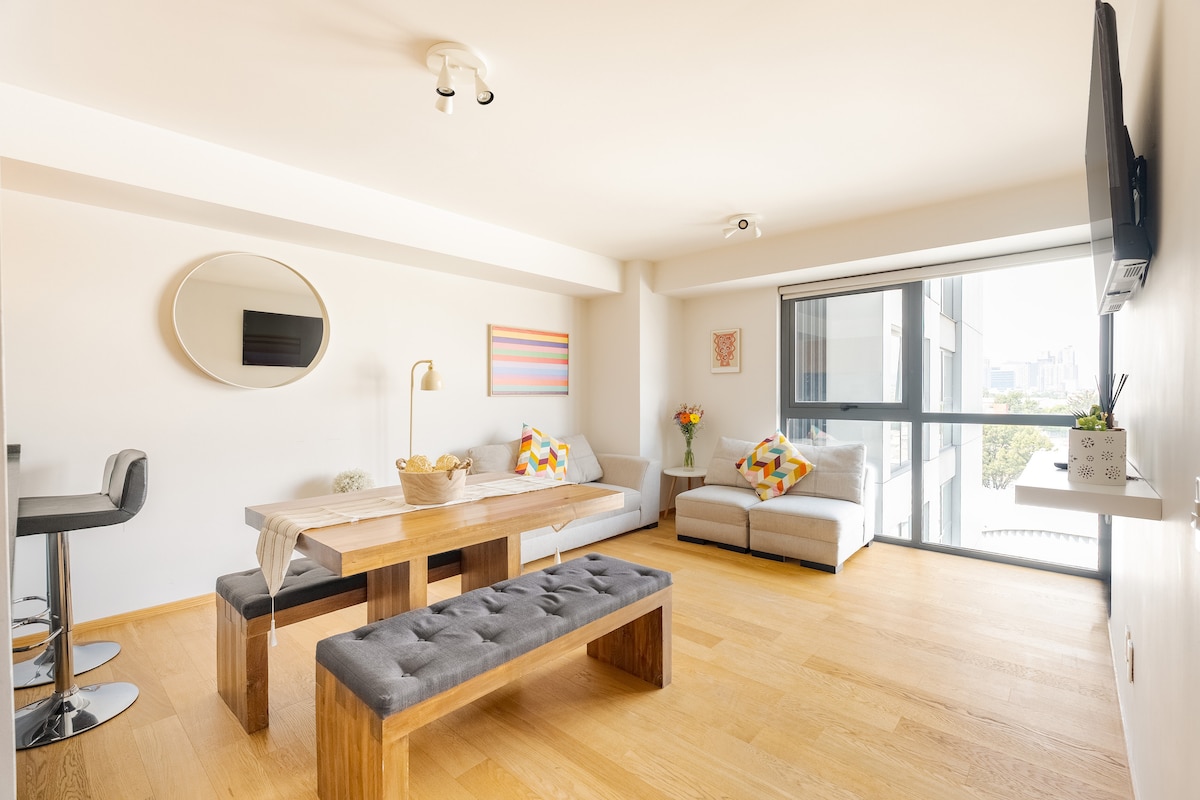 Pis lluminós amb terrat i gimnàs a pocs minuts de Reforma, ideal per a 3 hostes. Ideal per a estades durant la Copa del Món de 2026 o per explorar Ciutat de Mèxic amb comoditat. Inclou wifi d'alta velocitat (200 Mbps), un espai còmode per relaxar-te o treballar i accés al terrat i al gimnàs. Situat al centre, amb accés fàcil i a només: A 1 km del Monument a la Revolució, A 1,5 km de l'Àngel de la Independència, A 2,5 km de Roma, A 3 km de Condesa, A 3,5 km del Centre Històric. Ideal per a qui busca comoditat i una ubicació fantàstica