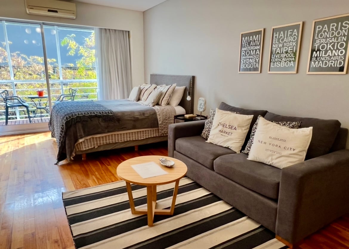 Stylish studio in Palermo's heart. Experience the best of Palermo in our brand stylish studio! Unwind amidst modern furniture and relish the center-of-it-all location. Enjoy the luxury building with pool, sauna, sum, laundry and garden. Explore trendy shops, art galleries and dine at diverse eateries. Ideal for solo adventurers, couples or business travelers seeking a comfortable and memorable stay in Buenos Aires vibrant heart. Book now and indulge in the allure of Palermo!