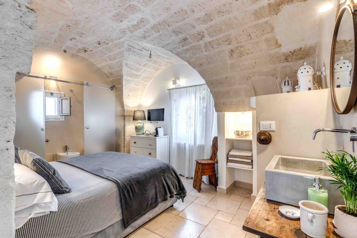 Després de dos anys de renovació, finalment estem preparats per presentar la nostra petita joia. Originalment utilitzats per prémer raïms, vam convertir l'antic edifici de pedra en un espai únic que té un equilibri refrescant entre l'autenticitat i l'estil. Tot i que pots desconnectar aquí a la natura, està molt a prop del mar (5 minuts) i dels pobles encantadors de Carovigno (5 minuts) i Ostuni (20 minuts). L'aeroport de Bríndisi està a 20 minuts.