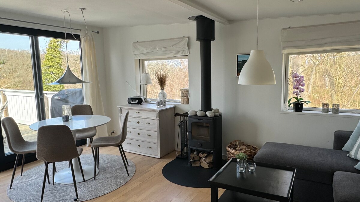 New floors, kitchen, and furniture done in 2024. See newest photos. Our cozy house is located in a protected forest on Bornholm near Due Odde. The house is located 1 min. walk away from one of Denmark's best sand beaches, that you usually will have all to yourself. Grocery shopping is 6 minutes away. The area has beautiful nature trails, where you won’t meet many people. The home has 3 bedrooms, a conservatory, a bathroom and a big kitchen area. Besides that there is also a large terrace.