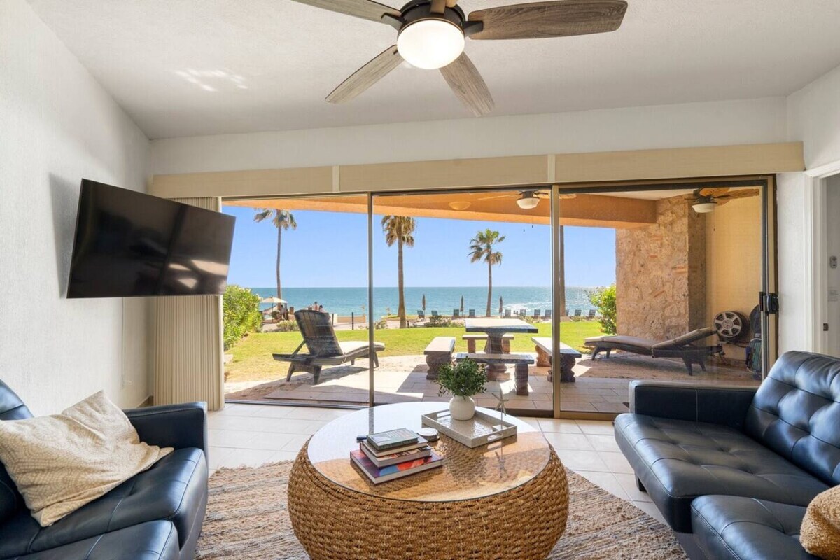 La fantàstica unitat de planta baixa és la més propera a la platja que pots ser! Aquest apartament és la millor ubicació del complex! Amb 2 dormitoris, 2 banys amb un gran pati ampliat, pots seure al pati i escoltar les onades del mar. Els mobles inclouen un televisor de pantalla plana, un sofà doble de microfibra, electrodomèstics d'acer inoxidable i taulells de granit. El dormitori principal té un llit king i un televisor de pantalla plana. El segon dormitori té un llit queen i vistes al port antic. Pots veure la platja f