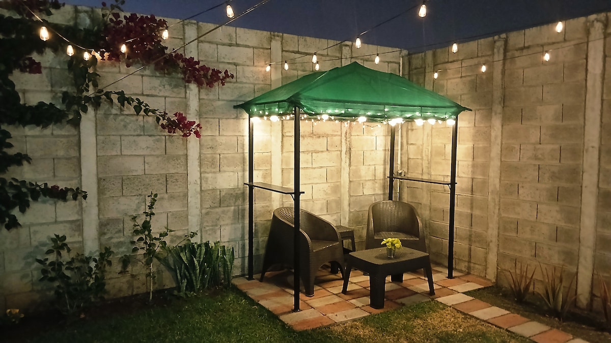Gaudeix d'una experiència elegant en aquest allotjament cèntric. Casa ordenada, comunitat privada, neta i còmoda al cor de les zones més populars de Santa Ana. A poca distància del centre comercial Metrocentro i la Plaça Crystal. Gaudeix veient pel·lícules a l'espai obert amb aire condicionat. Prepara un bon àpat en una cuina totalment equipada o gaudeix de tots els restaurants de la zona que ofereixen lliurament a la comunitat. Gaudeix del cafè del matí o del vi de la nit al pati cobert de la pèrgola amb llums de bistró.