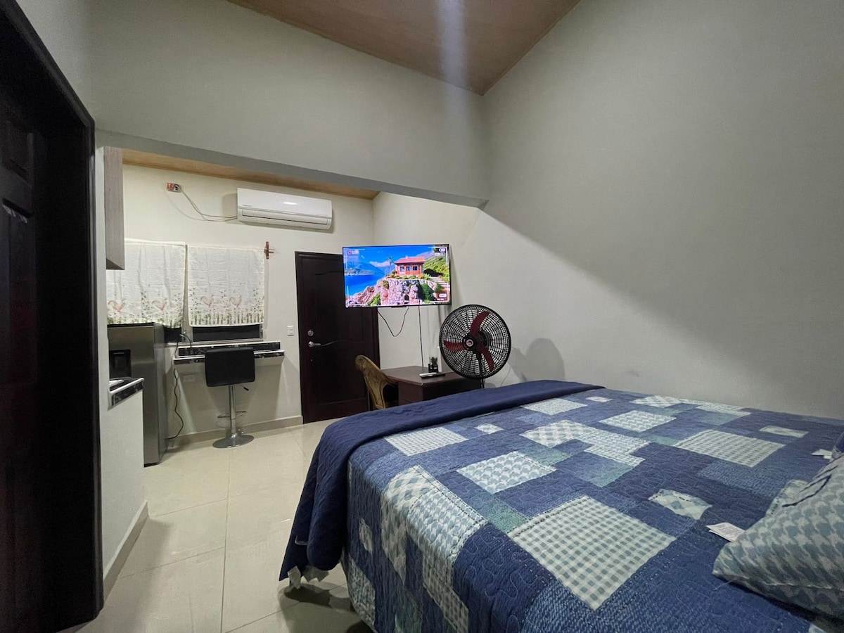 🛌 Apartamento en circuito cerrado con seguridad 24 horas, idealmente ubicado cerca del aeropuerto Ramón Villeda Morales y a pocos minutos de centros comerciales, restaurantes, farmacias, supermercados y gasolineras. Ofrece una habitación con cama king size, terraza privada, aire acondicionado, baño completo, smart TV, comedor y cocineta. - Estacionamiento para dos vehículos. El espacio está completamente amueblado y decorado para garantizarte una estancia cómoda y acogedora, como en casa.
