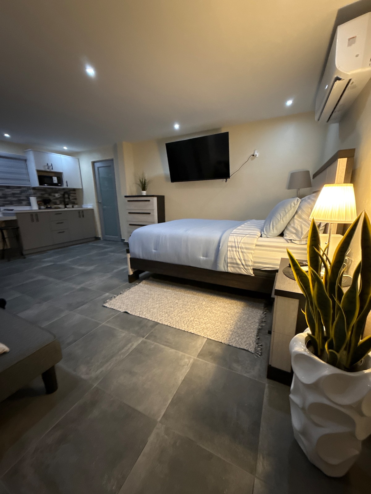 Espai bonic i modern, perfecte per a una parella o un grup de quatre persones. Estratègicament situat a cinc minuts de l'aeroport i a 10 minuts de San Juan. Vine a Puerto Rico i gaudeix de les platges, la seva gent i molt més. El pis consta d'una sala d'estar amb un sofà llit de matrimoni, una bonica habitació amb un llit queen size, dues unitats d'aire condicionat, dos televisors i una cuina bonica i moderna amb tots els estris per cuinar, aparcament privat i balcó per compartir amb la teva família.