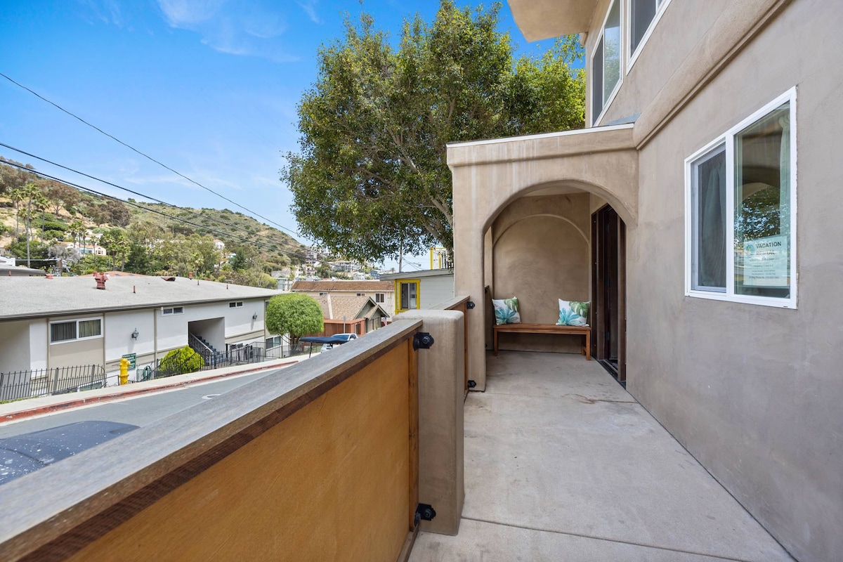 the CATALINA LIFE Vacation Rental is affectionately described as the cute house on Clemente with the blue shutters. It’s a spacious 2-story, 2 bedroom, 2-full bath family friendly townhome located “on the flats” & sits among Avalon’s cottages. Great location to enjoy the luxury and pleasure of a flat, beautiful & short walk to Avalon’s beaches & attractions Enjoy your front courtyard, people watch, visit with passersby or sneak away to your private backyard patio. Then, step into