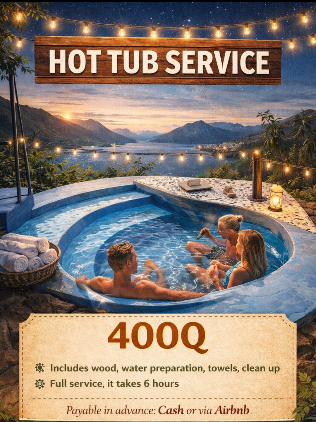 Aquesta vil·la, situada a sobre del petit poble de Jaibalito, ofereix unes vistes impressionants i un veritable refugi a la natura. Està dissenyat per a viatgers que busquen serenitat, autenticitat i connexió amb la comunitat local. Arribar-hi pot ser tota una aventura: el camí d'accés és rústic i puja; cal estar en forma i ben preparat. A pocs minuts a peu trobaràs restaurants i el mercat local, i amb un curt viatge en vaixell podràs explorar els nombrosos pobles que hi ha al voltant del llac.
