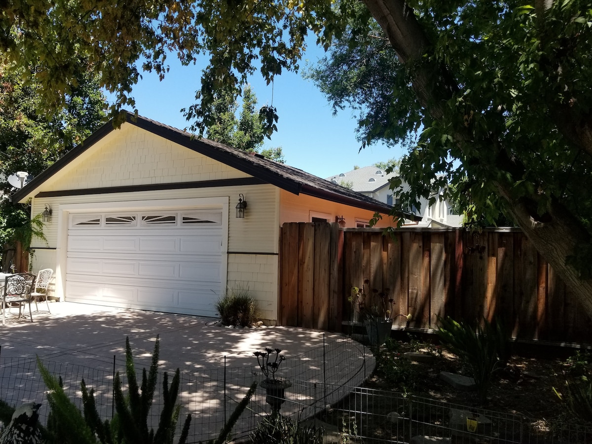 La nostra casa es troba en un terreny de mitja hectàrea, en un carrer sense sortida molt tranquil i aïllat, amb fàcil accés a les principals autopistes, a minuts de l'aeroport SJC, del centre de la ciutat, sap, SJSU, centre de convencions. Aquest anunci és per a una unitat independent sencera, adjunta a la casa principal. Disposa de 2 habitacions amb pati privat i piscina per a tu. Ets lliure de relaxar-te al pati del darrere amb vistes, envoltat d'arbres madurs, colibrís, papallones mentre surts a la xarxa, o nedar a la nostra piscina privada quan el temps ho permeti.