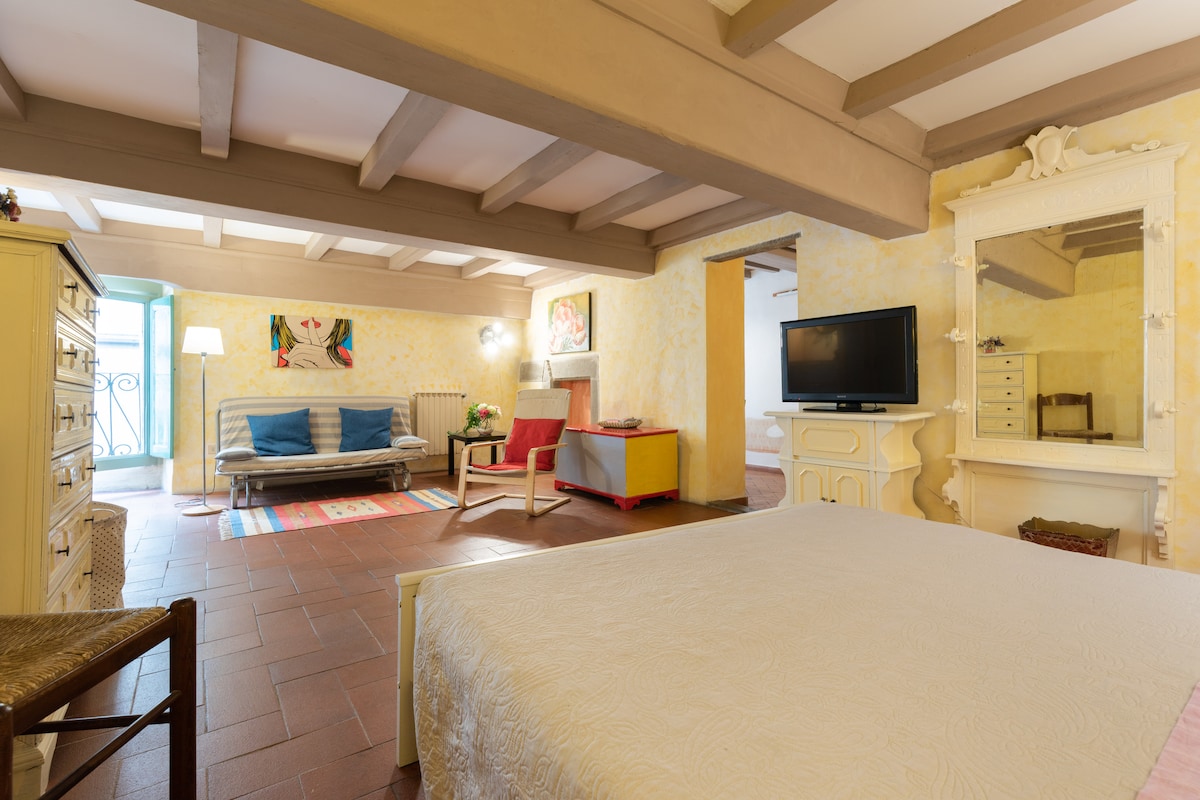 Descobreix alguns llibres d'art des de la comoditat d'una butaca de pell al costat de la biblioteca. Aquest apartament reformat amb una terrassa espaiosa barreja antiga i nova, des de frescos de sostre antics fins a les últimes pintures inspirades en Pompeya d'un famós artista local. Relaxa't a la terrassa amb una copa de deliciós vi Chianti, llegeix un llibre a la terrassa i sent la història de la família dels Mèdici.