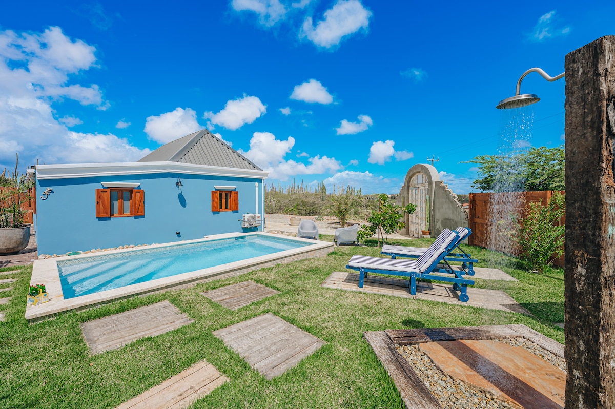 Descobreix la història d'Aruba a Cas MaDidi, una casa cunucu de més de 100 anys restaurada amb cura a Santa Cruz. Les parets de pedra originals i les persianes de fusta es combinen amb les comoditats modernes per oferir una estada autèntica a l'illa. Relaxa't a la piscina privada, descansa sota la pèrgola o gaudeix de fruita del jardí. Terrassa amb vistes de 360° a l'illa i més arbres de fruita tropical. Envoltada de natura, però a prop de platges i atraccions, aquesta casa de 2 dormitoris i 2,5 banys és un refugi tranquil amb ànima local.