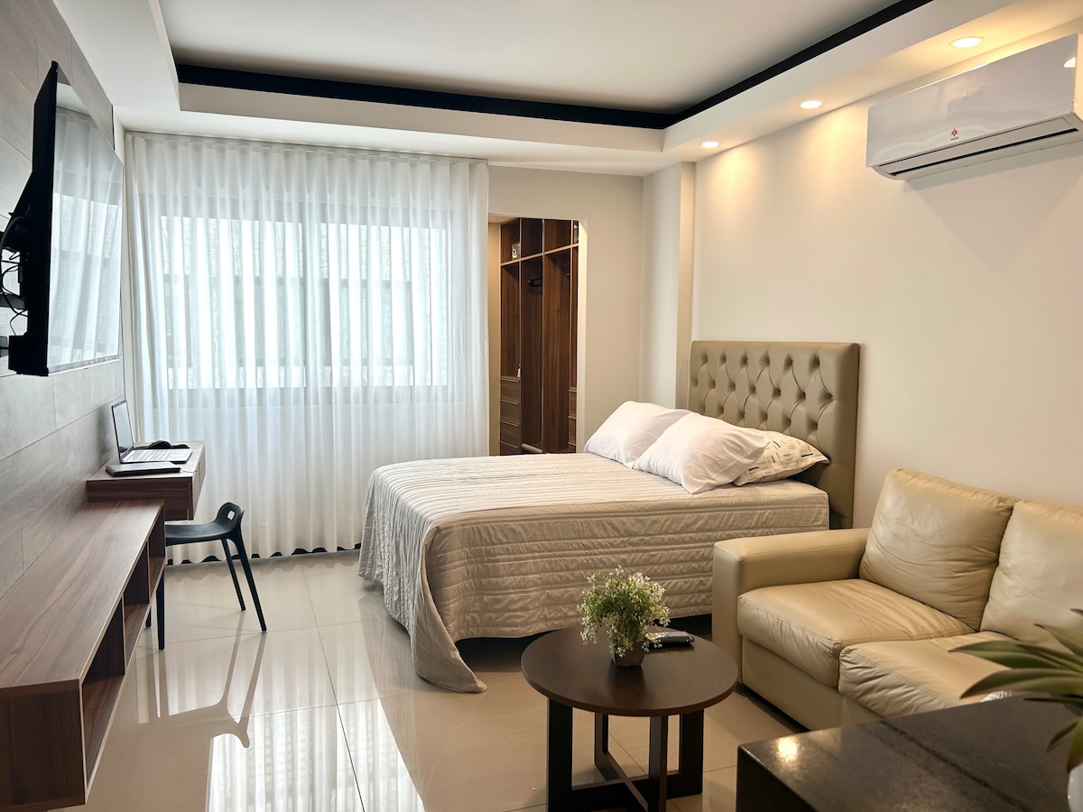 Escapa't a la comoditat al cor d'Equipetrol ✨ Pis modern a la segona planta de l'exclusiu edifici Skyluxia 🏢 Perfecte per a viatges de negocis o escapades en parella ❤️🔥 Inclou: Llit 🛏️ de matrimoni ultra còmode 🚿 Bany privat amb dutxa calenta 🍽️ Cuina totalment equipada 💻 Wifi ràpida 📺 Televisor intel·ligent amb cable ❄️ Aire condicionat ☀️ Llum natural I la millor part... accés a serveis de luxe: 🏊♂️ Piscina | 🏋️ Gimnàs | ♨️ Sauna | 🎬 Cinema | 🌇 Vistes panoràmiques T'esperem!
