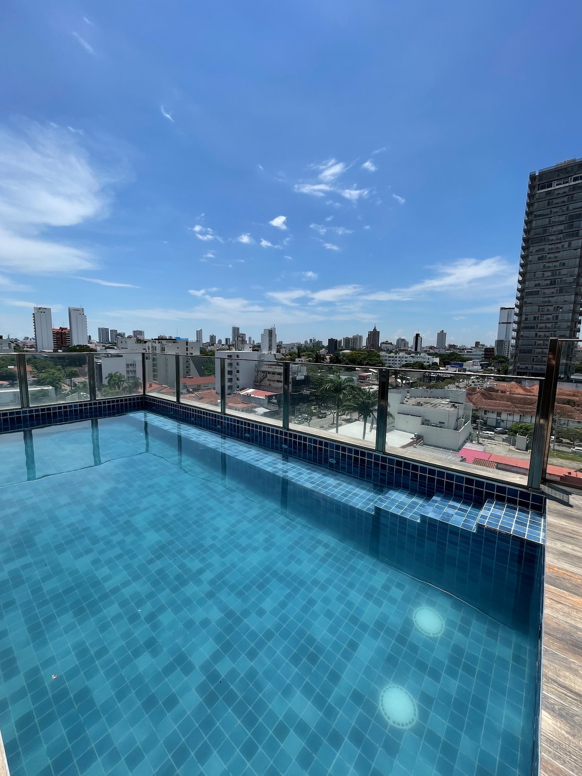 Enjoy an unforgettable stay in our smart apartment, located in the best neighborhood of the city. It features a refreshing pool, a co-work space for comfortable work, a barbecue for enjoying delicious outdoor meals, a terrace with a beautiful view, and a café on the ground floor with optional breakfast. The space accommodates 4 people, with 1 bedroom and 2 beds (Queen and 2plz). It is located near the best companies and tourist attractions in the city.