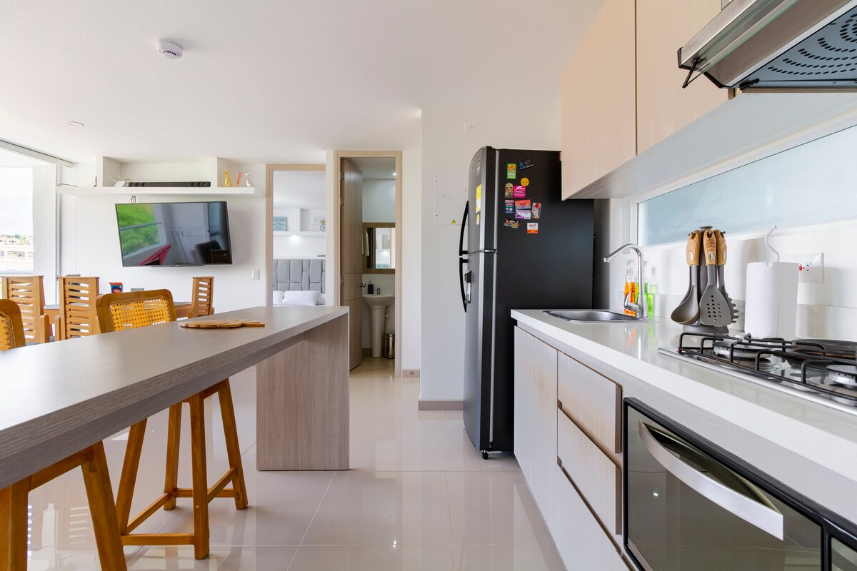 Gaudeix del sol i la tranquil·litat de Santafé de Antioquia en un apartament modern amb vistes panoràmiques, piscines i zones ideals per descansar en família o amb amics, un espai on convergeixen la tranquil·litat i la diversió saludable. També té un tobogan divertit, solàrium, jocs infantils, pista sintètica i golf. Visita aquesta ciutat històrica que destaca per la seva història i arquitectura inestimable, a més de la seva gran oferta gastronòmica, cultural i comercial.