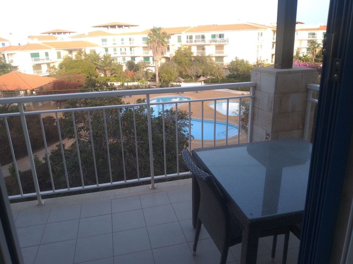 APARTAMENT CÈNTRIC PER A DUES PERSONES A LA ILLA DE SAL, POBLE DE SANTA MARIA, AL COMPLEX TURÍSTIC DE PORTO ANTIGO 1. DUES PLANTES i TERRASSA, TOTES AMB EXCEL·LENTS VISTES AL MAR (55 mts2). AIRE CONDICIONAT, CUINA,WIFI I RENTADORA. SUPERVISAT LES 24 HORES. COMPLEX AMB PISCINA A QUATRE METRES DE L'ACCÉS PRIVAT A LA PLATJA. LUGAR TRANQUIL, BONITO I SEGUR AL CENTRE DEL POBLE. DISPONIBLE NOMÉS DE MAIG A SETEMBRE.