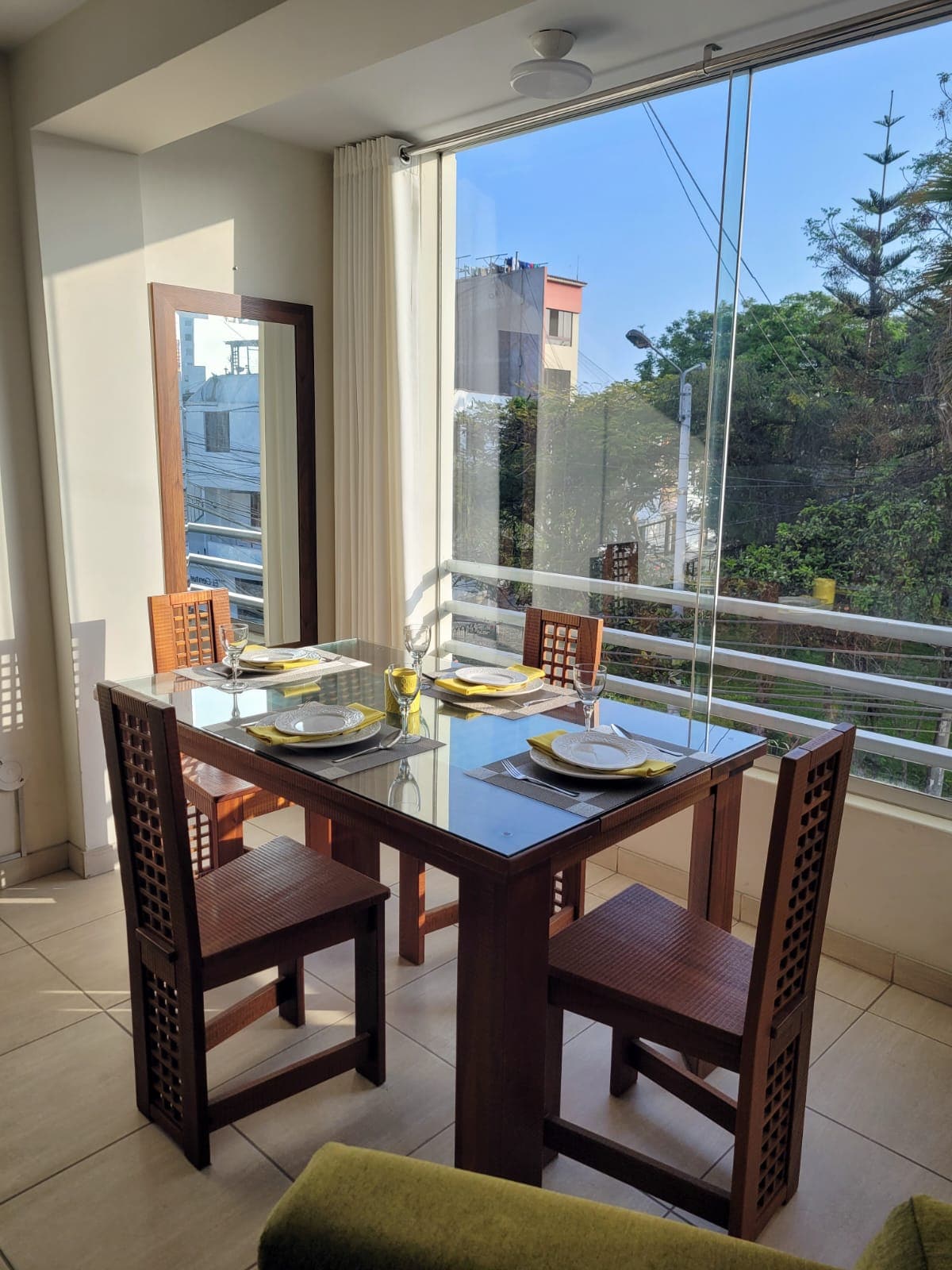 Refúgiate en un loft moderno y luminoso en la exclusiva urbanización California, Trujillo. Ubicado en un sexto piso de acceso por escaleras (sin ascensor), ofrece privacidad, una excelente vista y una tranquilidad difícil de encontrar en la ciudad. Zona céntrica, rodeada de parques, restaurantes y cafeterías. El depa cuenta con cama cómoda, cocina equipada, barra alta, TV, WiFi y lavadora. Ideal para escapadas o viajes con estilo.