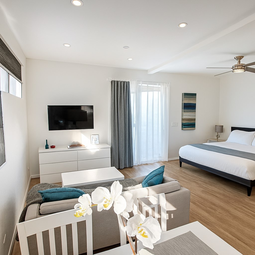 A 5 minuts a peu del passeig marítim del carrer 3, dels centres comercials i els restaurants. A 10 minuts a peu de la platja! Et donem la benvinguda a la teva escapada privada al cor de Santa Monica! El nostre acollidor allotjament d'1 dormitori i 1 bany a Airbnb és el lloc perfecte per al teu viatge a Los Angeles. Amb un llit còmode de matrimoni, un ampli espai a l'armari, un bany ben equipat i una sala d'estar relaxant amb televisor de pantalla plana i internet d'alta velocitat, et sentiràs com a casa. Reserva la teva estada avui mateix i gaudeix del millor de Santa Monica!