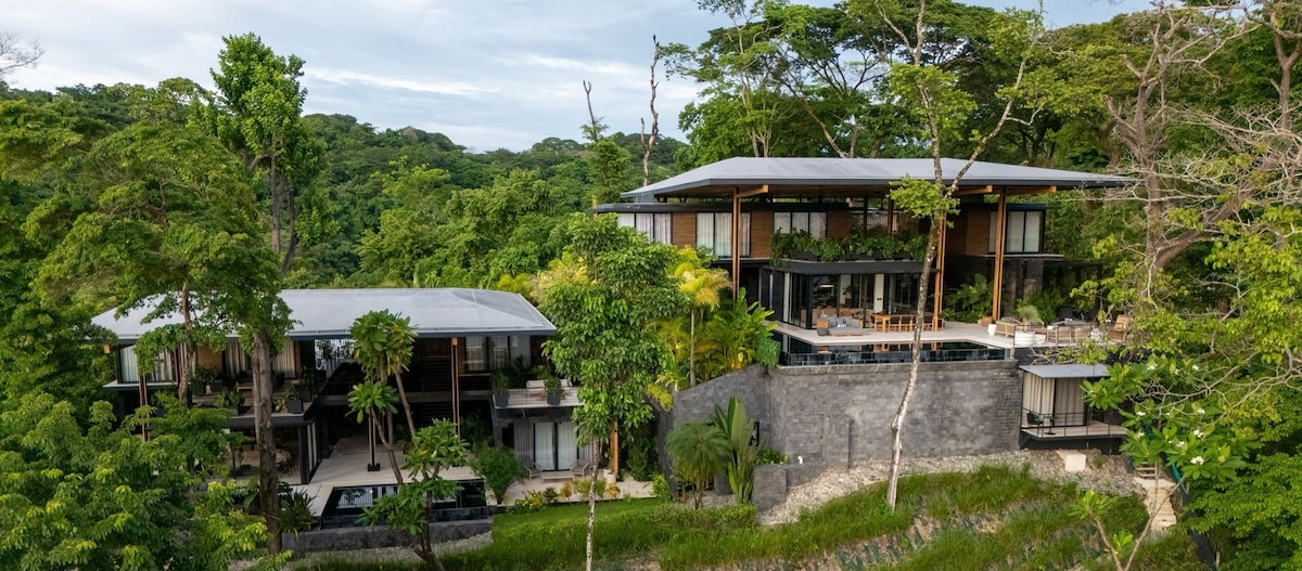 Perched high above on a lush mountainside, Villa Elu offers stunning unobstructed views of the waves below Playa Hermosa beach. With incredible ocean views from every bedroom, each with its private entrance, Elu delivers a truly unmatched vacation experience. From a full-time concierge, and saltwater infinity pool, to the constant sounds of waves crashing in the distance, absolutely no detail was missed in this 12,900 sq. ft brand-new masterpiece.