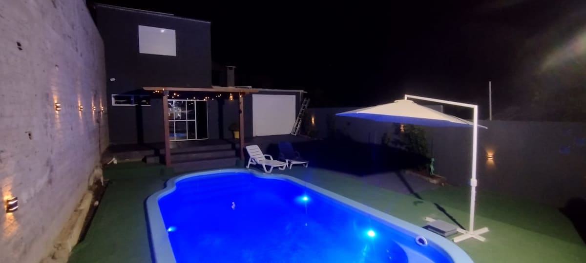 Casa cèntrica per gaudir d'uns dies excel·lents! Molt còmode per relaxar-se, segur i amb entorns il·luminats. A prop de la zona comercial i dels restaurants. A poques maneres del supermercat. Disposa de WIFI d'alta velocitat d'ús gratuït, aire condicionat, TV per cable, menjador amb estufa de llenya, cuina completa i graella a l'aire lliure. Dormitoris amb dormitoris i llits dobles, 1 bany complet amb dutxa de gas i un altre exterior situat a la bugaderia. Garatge individual per a dos vehicles.