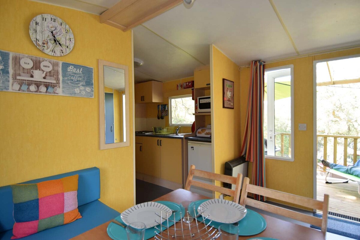 Vida a l'aire lliure enmig de la natura, en aquest meravellós allotjament de glamping amb el luxe d'una casa rural. Una gran terrassa coberta amb cuina a l'aire lliure, 2 cabanes de fusta per dormir i el teu propi jardí amb sol/ombra i barbacoa. Gaudeix de molta privacitat, fes ús de les moltes instal·lacions del parc ecològic o troba la comoditat dels altres hostes.