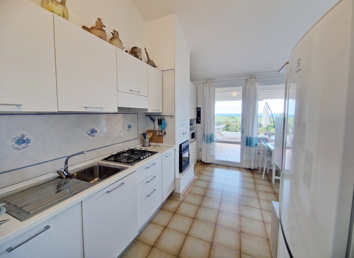 El pis es troba a la tercera i última planta d'un edifici recentment reformat al cor de Villasimius. Es tracta d'un petit àtic d'uns 90 metres quadrats amb una terrassa privada de 25 metres quadrats. Tota la casa acaba de ser renovada (juliol del 2023) i està totalment moblada i equipada amb totes les comoditats. Consta d'una gran sala d'estar amb cuina americana, dos dormitoris i dos banys. La terrassa està equipada amb barbacoa, dutxa a l'aire lliure i mobles. Tota la casa gaudeix d'una gran brillantor i privacitat.