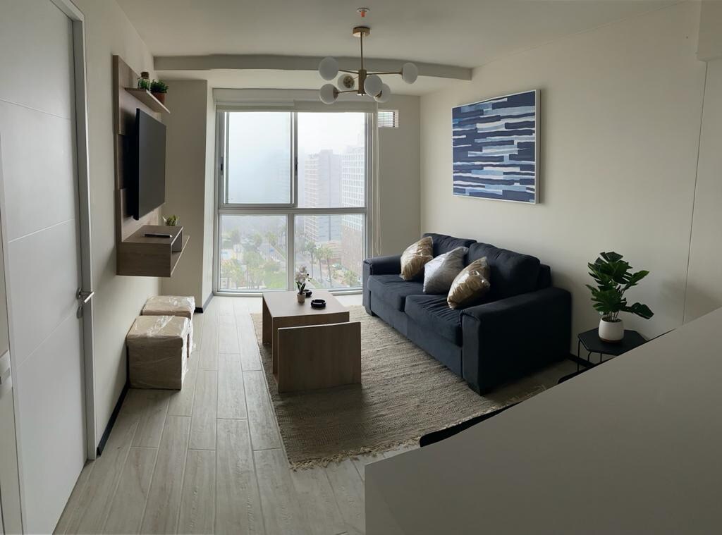 Remodeled Apartment! Located in Barranco, the most important central, cultural, romantic, and bohemian district of Lima; walkable surroundings. • Tourism & Business • 7th floor, safe and family-friendly condominium • Balcony • Spanish shower • Fully equipped kitchen • Washer+Dryer inside • Air conditioning • Concierge/Security 24h • 5min to Malecón/Miraflores • 10min to Business District • 20min to Historic Center • Close to bus, shops, restaurants, and entertainment