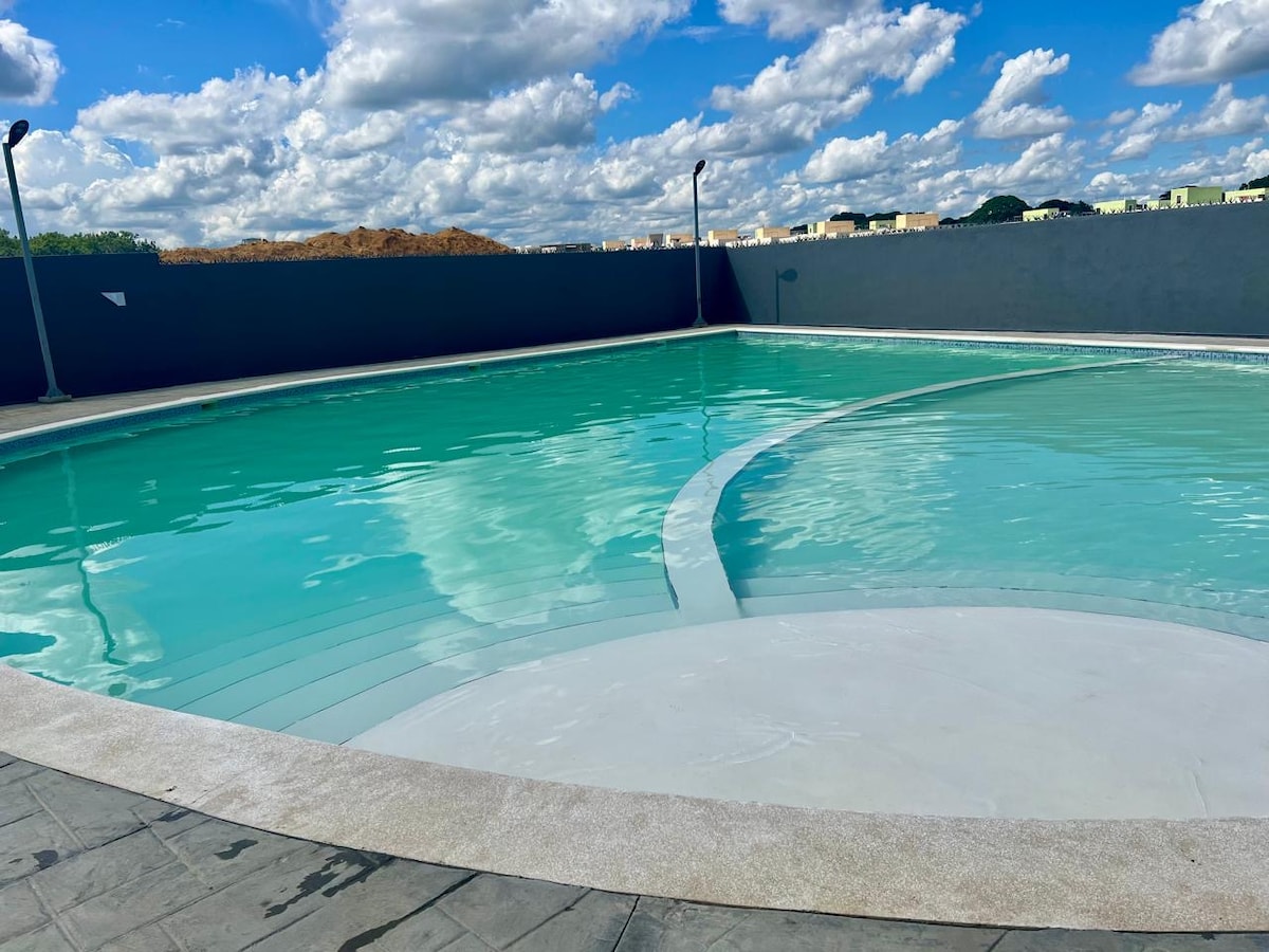 Relaxa't amb tota la família en aquest allotjament tranquil. Decoració elegant per a una estada de memòria i fotos. 3 dormitoris i 2 dutxes/banys. Piscina disponible per als hostes i barbacoa. Gimnàs disponible a l'allotjament. Seguretat les 24 hores i aparcament gratuït. El barri és una comunitat tancada amb un centre comercial a 5 minuts en cotxe, com altres botigues com supermercats, restaurants i gasolinera.