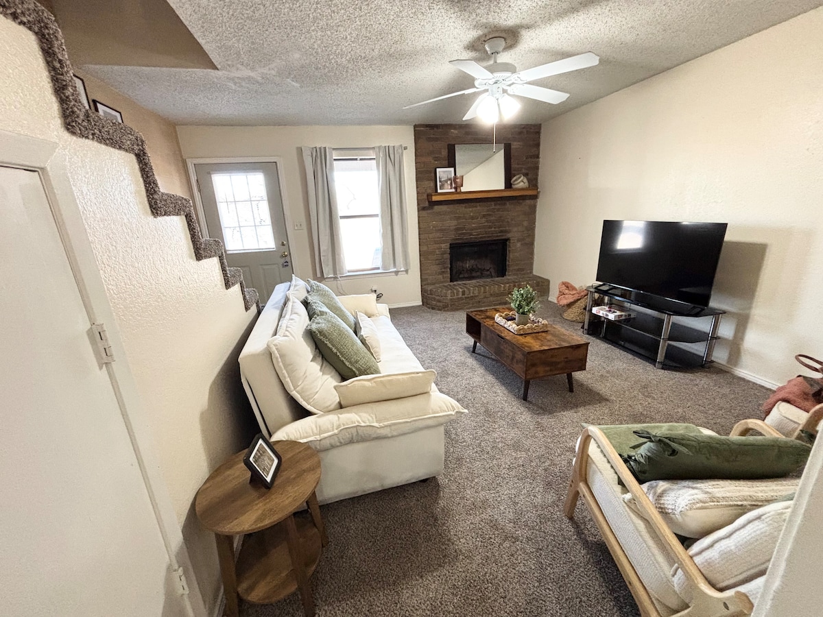 Gaudeix de la teva estada a Stephenville al nostre apartament estudi tranquil i elegant. Situat a la nostra propietat, tindràs accés al nostre pati privat i a tots els seus serveis com ara un espai d'entrenament, un estany de koi, una llar de foc i una graella. Aquest espai de nova construcció (abril del 2023) està equipat amb electrodomèstics nous, cuina completa, terres de fusta reformats i sostres alts. A poca distància a peu de la Universitat Estatal de Tarleton, és ideal per a pares o alumnes. Esperem la vostra estada!