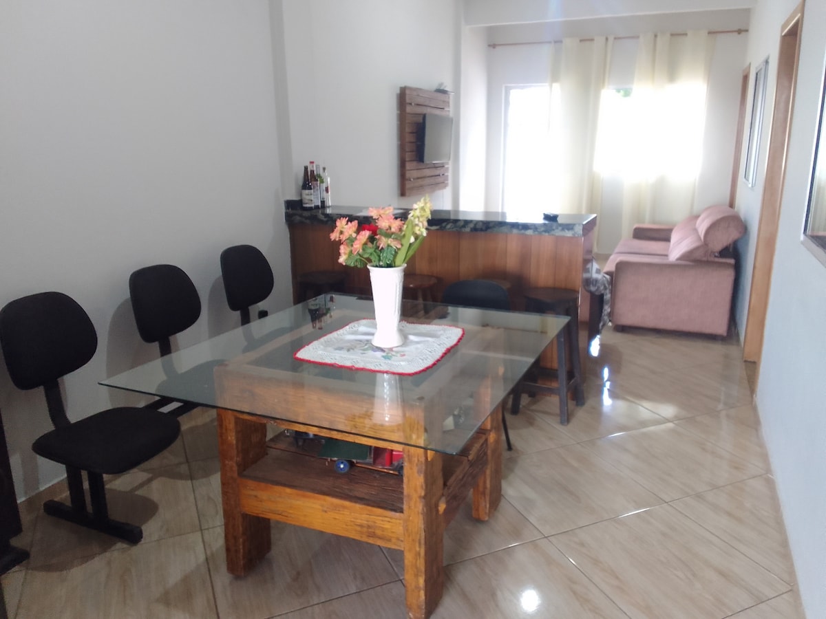Ideal para uma estadia de uma semana ou mais pois o desconto é vantajoso ( 50% para 1 mês). Você despertará ouvindo o canto dos pássaros e repousará em varanda com rede desfrutando a vista para o quintal de 2000m com árvores frutíferas. Uma escrivaninha auxiliar pode ser adicionada. Ventilador de mesa e de parede. Móveis exclusivos feitos pelo proprietário. O casal anfitrião mora em uma casinha nos fundos da propriedade . Acolhemos e respeitamos todas as raças, religiões e gêneros.