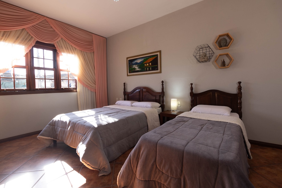 Porta la teva família per gaudir de Tiradentes en aquest preciós pis amb 3 dormitoris, amb 1 suite, bany social, sala d'estar combinada amb cuina i garatge per a 1 cotxe. Pis totalment moblat d'alt nivell i equipat per donar-te la benvinguda a tu i als teus amics amb gran comoditat. * Proporcionem llençols i llençols de bany; * Espai a prop del centre (600 metres). Serà un plaer tenir-te!
