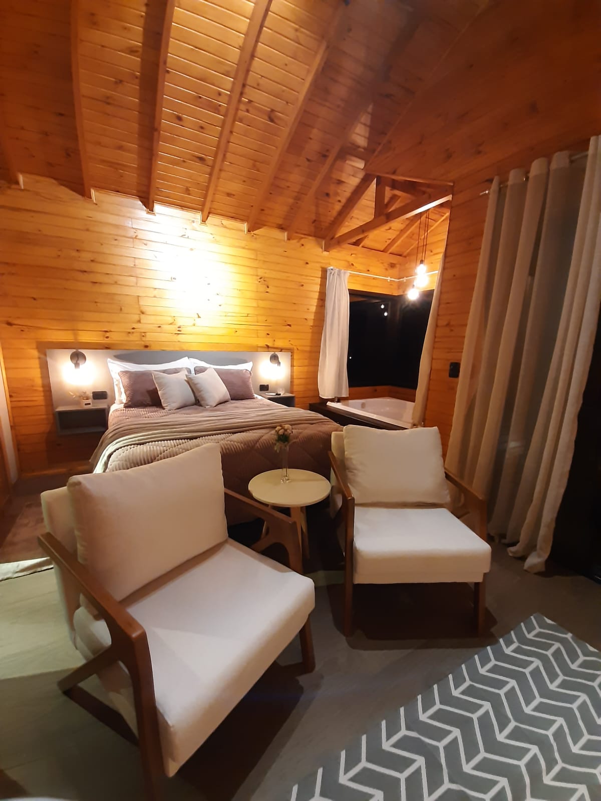 Dues casetes acollidores per a parelles situades al cor de les vinyes de São Joaquim (Santa Catarina). Equipat amb terra radiant, aire condicionat, calefacció, banyera d'hidromassatge, wifi, garatge cobert i una cuina preparada per oferir la màxima comoditat als nostres hostes. Esmorzar inclòs a l'habitació de nit.