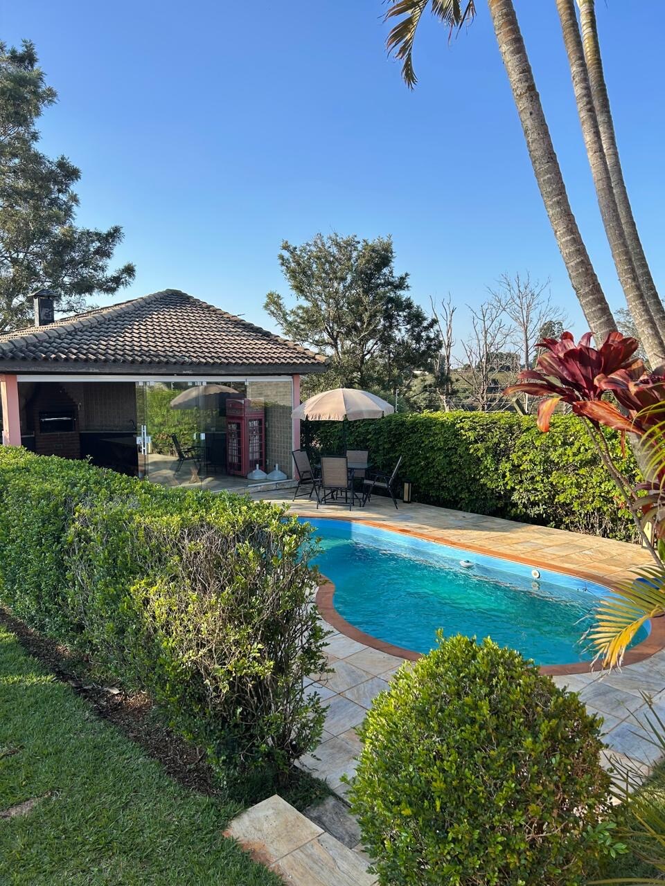 Chácara assolellada en un complex residencial tancat amb accés controlat. Amb 5 DORMITORIS amb 4 dormitoris més 4 dormitoris, té capacitat per a 4 famílies de 3 persones més 1 parella amb moltes comoditats. És sostenible, té generació d'energia solar. Disposa d'un ampli gourmet amb barbacoa, forn de pizza i estufa de llenya. Agafa tota la família per passar- t'ho bé. La cuina està completa amb tots els estris i rentaplats. Televisor intel·ligent de 70 "
