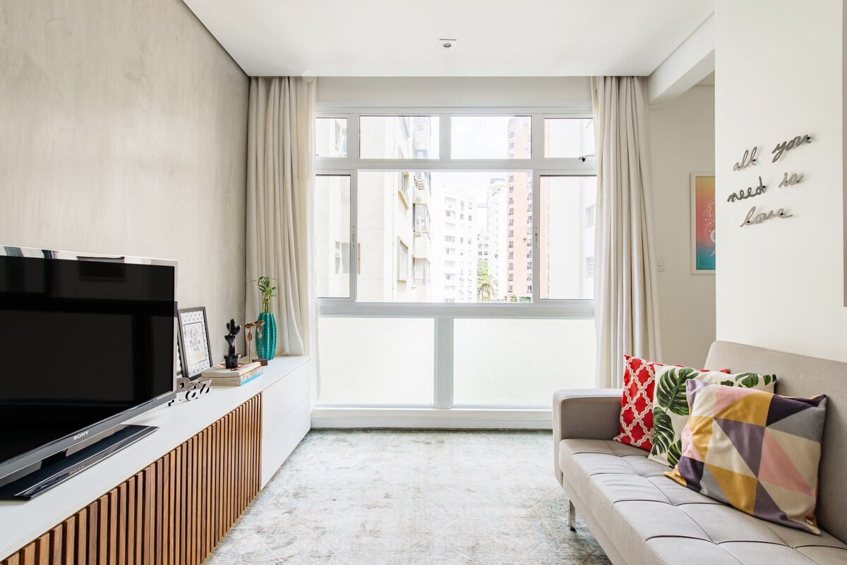 Allotja't en aquest acollidor pis al cor dels Jardins, el millor barri de São Paulo en un carrer tranquil i segur. A prop de Paulista i del parc Ibirapuera. Gran llum natural, servei de neteja (de dilluns a divendres), wifi, televisor intel·ligent, aparcament a l'edifici i un balcó deliciós. Comoditat a l'habitació amb aire condicionat, armari i llit queen size amb matalàs tou i tovalloles/llençols de cotó egipci. Totalment equipat. Ideal per a aquells que viatgen per feina, oci o tractament mèdic.