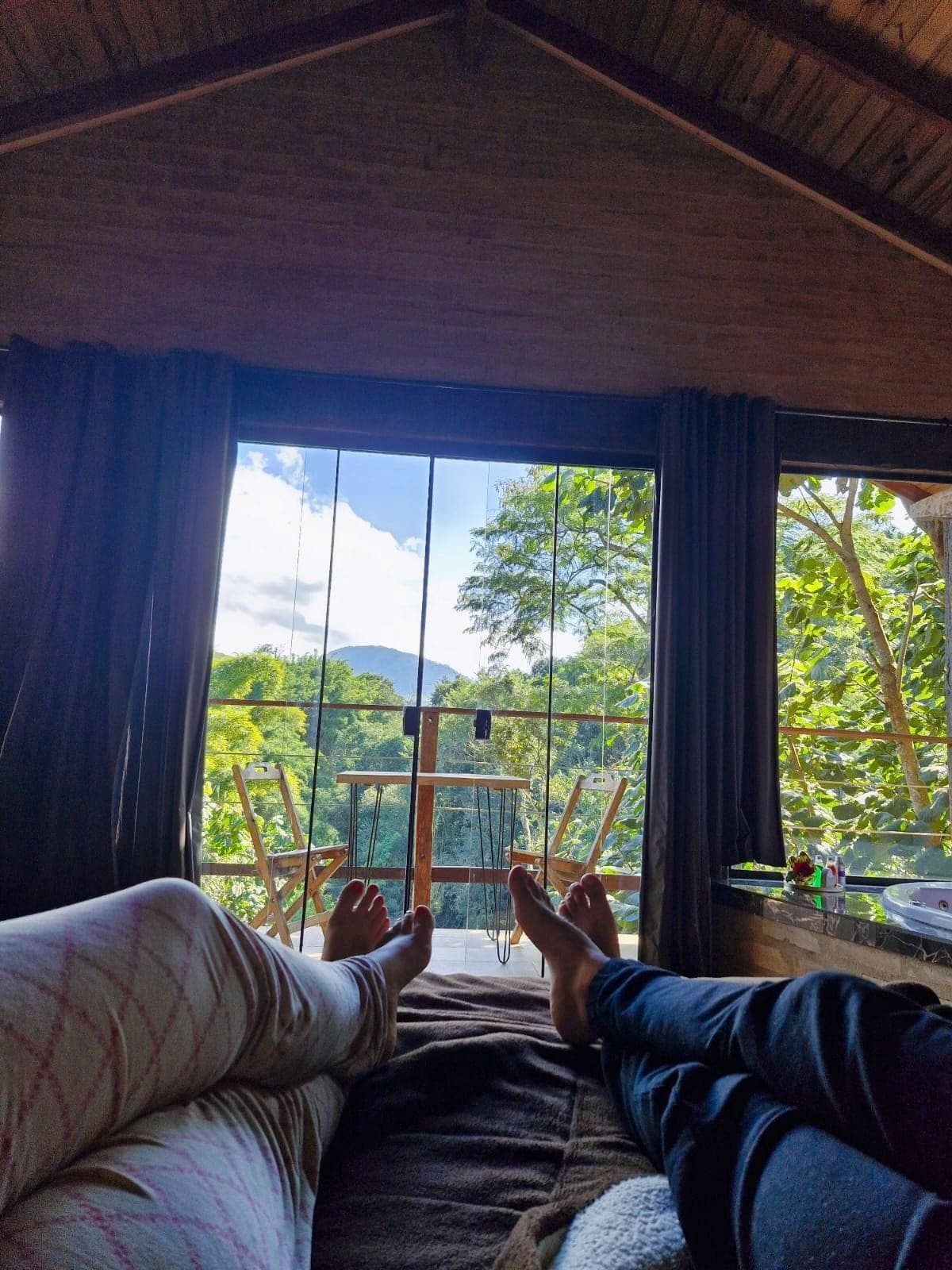 Cabana na Mata és un lloc de connexió amb la natura, dins d'un gran bosc atlàntic d'altitud. El poble té la comoditat d'una petita casa de fusta a la muntanya amb molta privacitat, Starlink, aigua de broll font i cristal·lina escalfada per una dutxa de gas i un calefactor de llenya, el cor de la casa. A l'estiu, que és temporada de pluges, és important tenir un 4x4, però si no en tens, t'ajudaré a arribar-hi. Fes la compra i vine a fer un bany al bosc per renovar les energies! Seràs benvingut
