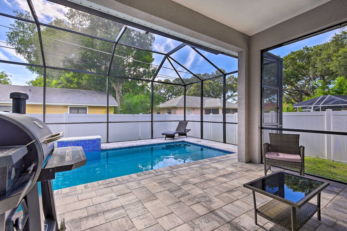Blue Lagoon Retreat has a great blend of comfort and convenience. Here’s a more detailed breakdown of its features: Bedrooms & Bathrooms: Three bedrooms and two bathrooms, providing ample space for guests. Location: A short drive to the beach, making it easy to enjoy coastal activities. Living Spaces: Spacious rooms, including a living room with a lanai for indoor-outdoor relaxation. Pool & Spa: A private pool, caged in for added privacy and security. The pool can be heated for an additional fee