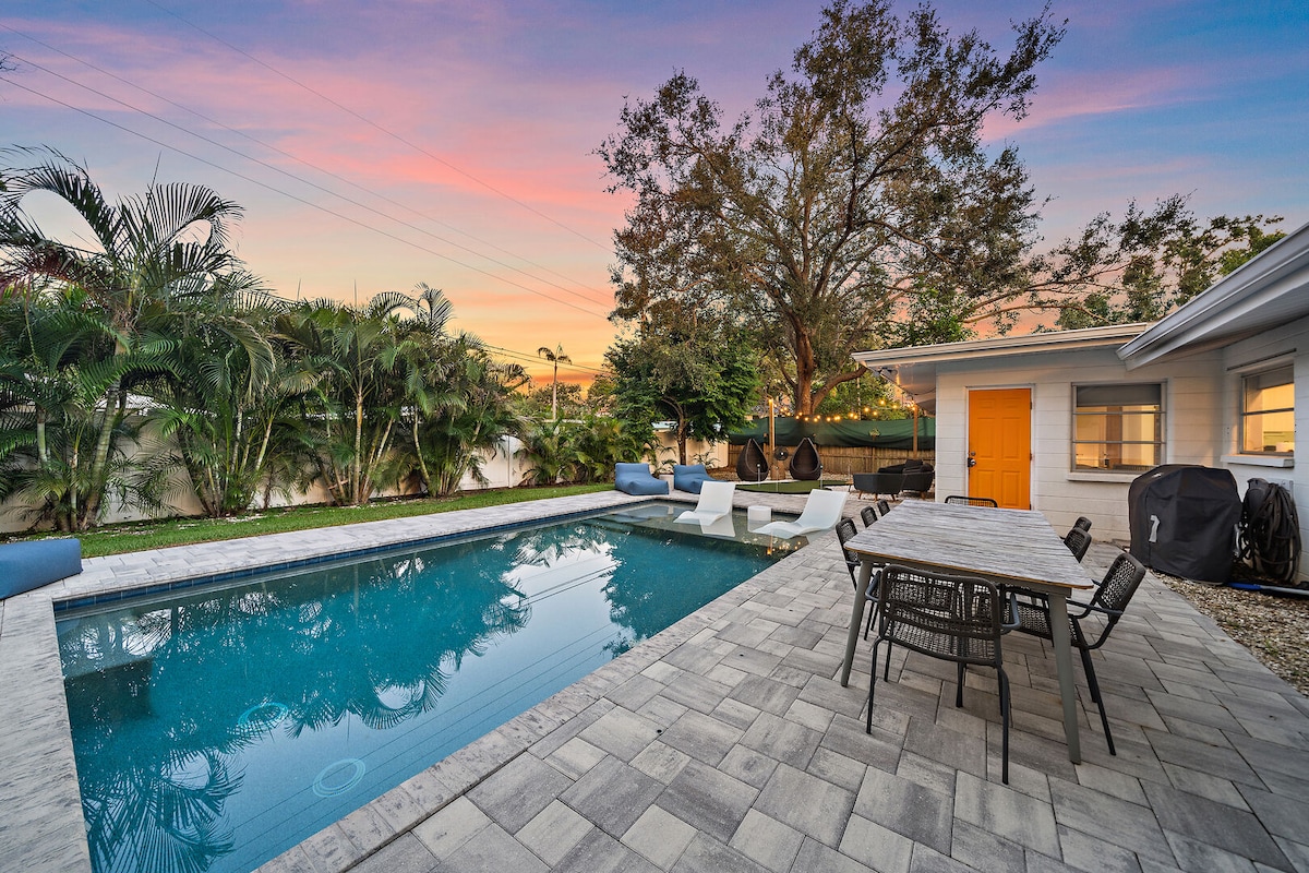 Relax at this modern heated pool house located just 15 min from the famous Siesta Key Beach. Nested in a quiet neighborhood with a lot of privacy, the house has plenty of space for an entire family or a group of friends. An additional family room with a TV for kids. Relax by the pool in the spacious outdoor area or explore the beautiful downtown filled with restaurants. Recently renovated, this home offers handmade authentic Mexican tile flooring to compliment a cozy and contemporary design.