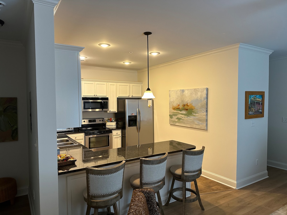 Nou renovació! Et donem la benvinguda a The Velvet Ditch. Aquest apartament es troba a POCA distància a peu dels estadis. Tot moblat. 2BR 2BA amb vestidor. La cuina té electrodomèstics d'acer inoxidable amb taulells de granit. La unitat té rentadora i assecadora de mida completa. Els hostes tenen accés a serveis com ara piscina, gimnàs, pavelló exterior, barbacoa, etc.