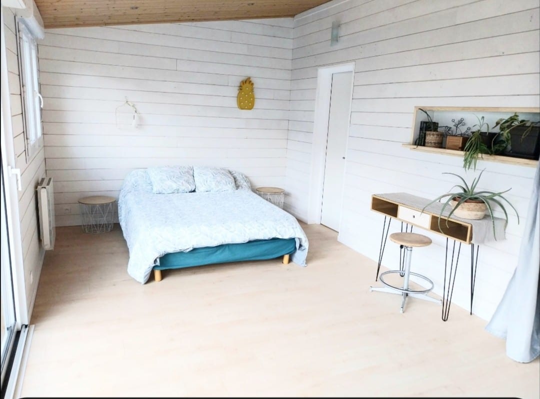 Notre studio se situe à l'entrée du village dans un parc ombragé, clôturé et sécurisé par un portail électrique . Studio spacieux, lumineux, chaleureux et bien isolé. Volets à la porte d'entrée et à la fenêtre, avec rideaux occultants. Draps et serviettes de toilettes fournis. Barbecue, salon de jardin et relax à disposition. Un pot d’accueil vous sera offert dès votre arrivée à partir de 16 h (ou plus tôt selon disponibilité) Wifi gratuit à très haut débit via la fibre Animaux non admis.