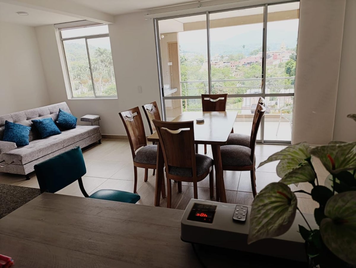 Et donem la benvinguda al nostre modern i fresc pis situat a la 8a planta de l'encantadora Villeta Ciutat dolça de Colòmbia. Perfecte per a un cap de setmana o per a les teves vacances a pocs minuts del parc principal, té totes les comoditats: cuina totalment equipada, 3 dormitoris 2 banys, una sala d'estar, un menjador i un bonic balcó, wifi, televisor, garatge i places de confort per gaudir. Disponible per a 6 persones. Esperem el teu ambient familiar!