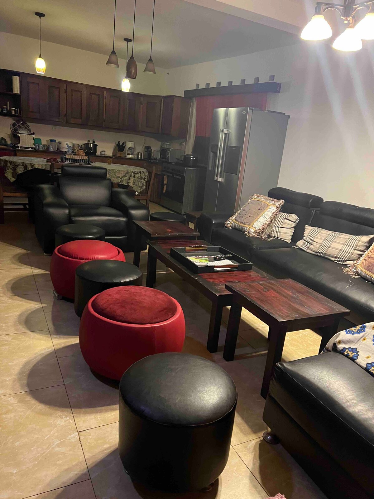 Gran apartament modern al segon pis, molt còmode i espaiós, amb sala d'estar, 1 dormitori, cuina totalment equipada amb nevera gran, cafetera, bany i molt més. Ubicació privada tancada a la ciutat de Sambava. Serveis: electricitat, gas, aigua calenta, fibra òptica il·limitada, wifi il·limitat, televisor intel·ligent, mosquiteres. No tenim cap tall d’electricitat. No hi ha aire condicionat, però tenim diversos ventiladors a cada habitació. Ideal per a grups Càmeres a l'edifici Tens tota la casa.