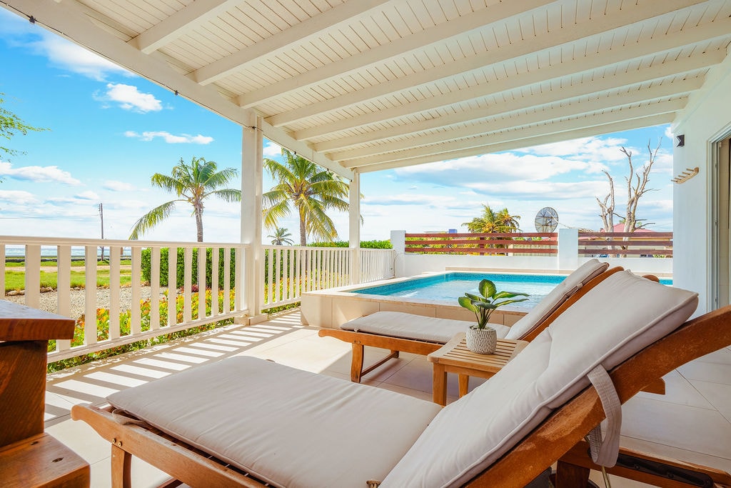 Suite totalment nova amb vistes a l'oceà. Podràs gaudir d'algunes de les postes de sol més boniques de l'illa de primera mà! Les instal·lacions exteriors inclouen una glorieta, una hamaca i un moll que proporcionen un accés fàcil a l'oceà, ideals per nedar. També hi ha caiacs i equips de busseig disponibles de forma gratuïta. Es troba en una zona relativament tranquil·la de l'illa, coneguda com una zona de pesca destacada. Alguns dels millors restaurants de marisc es troben al mateix carrer (Zeerovers i Flying Fishbone).