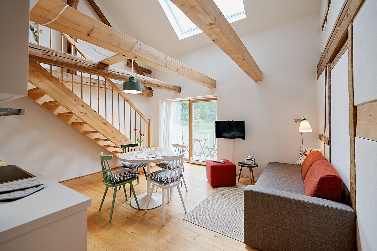 L'apartament Auguste es troba a la planta baixa d'una casa de dit de fusta reformada amb amor i té capacitat per a 4 hostes a 60 m2. La casa rural té un jardí de més de 1500 metres quadrats, amb molt d'espai per descansar i relaxar-se. El jardí obre directament a Lachsbach. Per als dies més freds, una llar de foc convida la sala d'estar. La roba de llit i les tovalloles estan incloses en el preu: arribada i siéntete còmode!