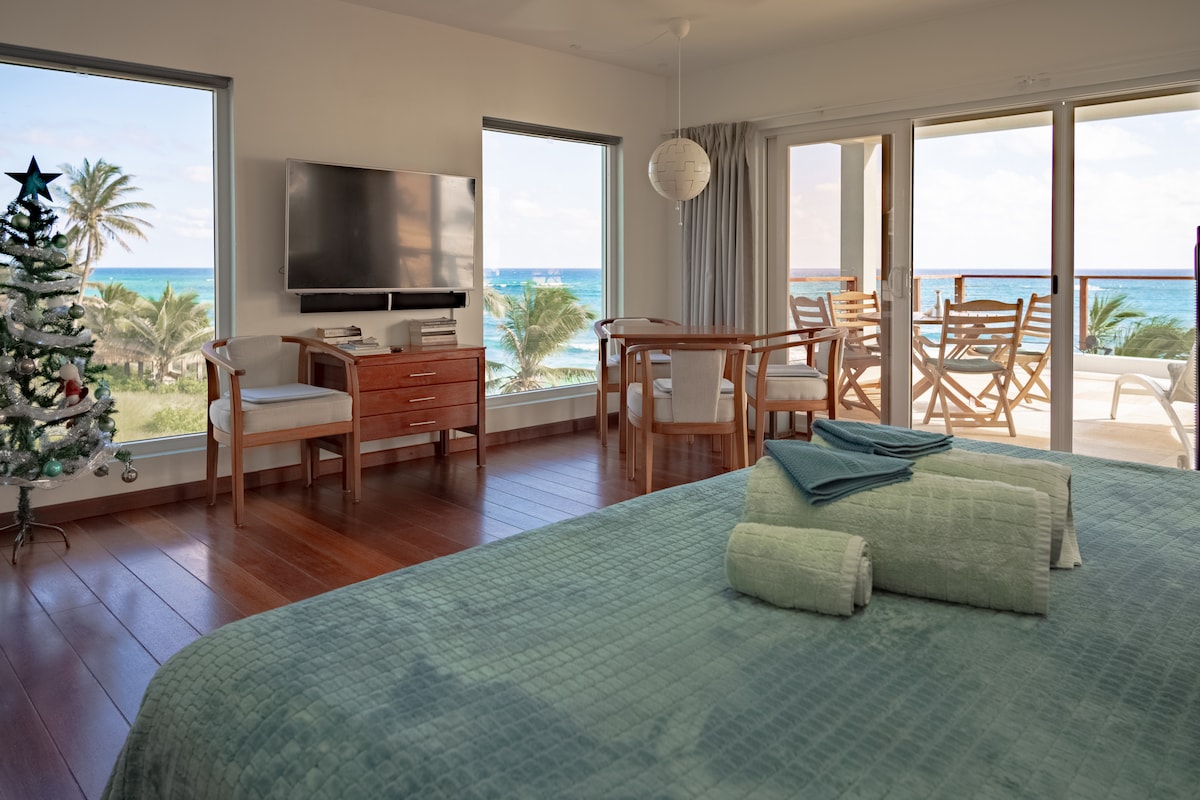 Preciosa propietat al costat de l'oceà amb 2 estudis independents; l'estudi # 2 està a la planta baixa exposat a la brisa que ve de l'est i té capacitat per a 2 persones; la roba de llit pot ser un llit «king size» o 2 individuals, així que fes-nos saber amb antelació què prefereixes; la unitat té aire condicionat, cuina americana, bany i un pati amb una vista fantàstica de l'oceà. Silver Sands no és una zona cèntrica, llogar un cotxe seria una bona idea.