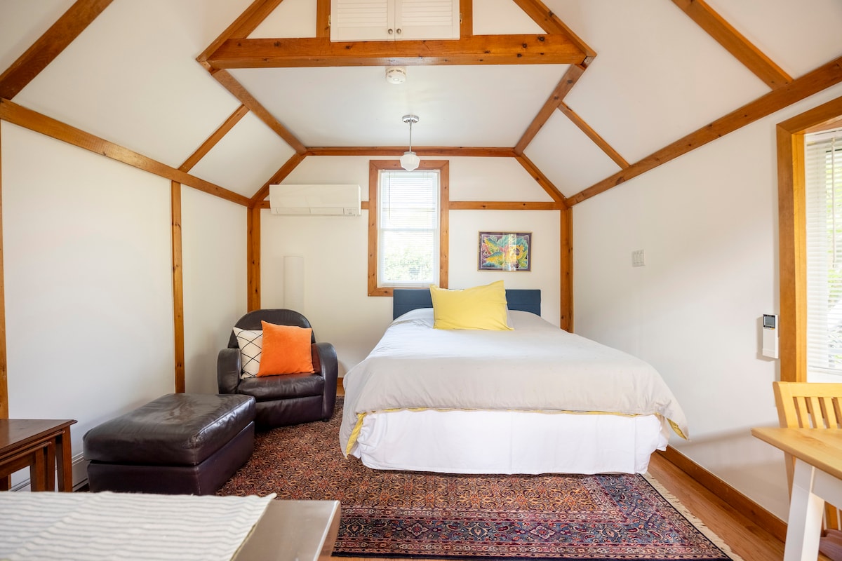 Aquesta casa d'entrenament independent, minimalista i independent és una escapada tranquil·la perfecta per a un, i també pot allotjar íntimament dues persones. Desperta't amb llum natural i totes les comoditats bàsiques d'una llar: un matalàs «queen size» de primera qualitat, llençols hipoal·lergènics 100 % de cotó, un bany privat, articles de tocador i elements bàsics per preparar menjar. No hi ha cuina. Opcions a prop per a àpats preparats, productes de supermercat i lliurament. Sense televisor. Sense despeses de neteja. Una escapada de 20 minuts des del centre de la ciutat, a prop del llac, a l'extrem est.