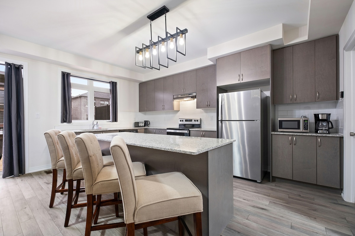 Et donem la benvinguda al nostre modern soterrani 2BR i 2BA a Richmond Hill. Ideal per a famílies o grups, disposa d'una sala d'estar elegant, una zona de bugaderia i una cuina americana ben equipada. El dormitori principal disposa d'una llar de foc i un bany annex, mentre que ambdós dormitoris ofereixen llits «king size» i un ampli emmagatzematge. L'entreteniment disposa de televisor i wifiNetflix i Amazon Prime,en un barri de luxe, a només 5 minuts a peu de Yonge St i de l'estació d'autobusos per accedir-hi fàcilment. Gaudeix de la comoditat i la comoditat