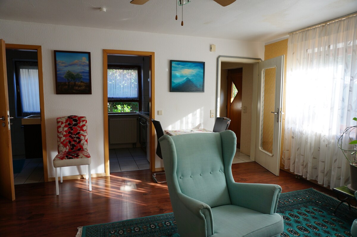 Soterrani situat tranquil·lament amb entrada independent en una ubicació idíl·lica a la Selva Negra al sud de Friburg. L'entrada és per escales i a través del jardí. Hi ha una petita cuina petita per Instal·lacions. Es pot utilitzar una banyera o una dutxa al bany. Hi ha una gran terrassa, així com cadires, gandules, taula i para-sol. Diverses rutes de senderisme et conviden a fer senderisme o anar en bicicleta.