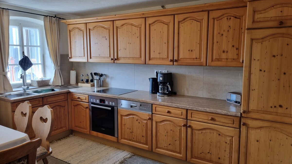 El nostre acollidor pis és una escapada perfecta per als amants de la natura i per a aquells que busquen relaxar-se! Ofereix un bon punt de partida per a tota mena d'esports a l'estiu i a l'hivern. Després d'un bon dia a la natura, pots relaxar-te a la pèrgola amb el seu propi jardí petit o a la sala d'estar davant de la llar de foc i gaudir de la vista al jardí o a les muntanyes.